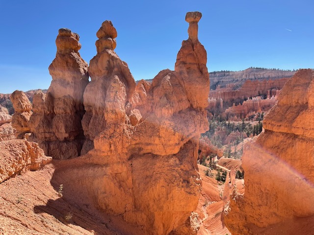 From Sunset point, we took the short hike over to Sunrise Point. And from Sunrise Point, we started our hike down into the canyon. We hiked a combination of trails that led us down into the canyon and through some of the pine forest at the bottom and eventually led us back to Sunset Point and where we parked. Some of the coolest and strangest landscape you’ll ever see. The hike wasn’t as strenuous as the day before but it was still kind of steep in spots and ended up being about 4 1/2 miles. Here are some pics from that hike and I’ll post a link at the bottom to the Gallery page where you can find the gallery with all the pics.