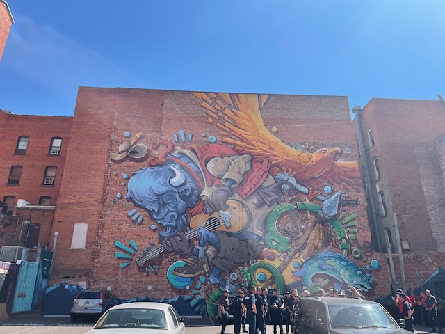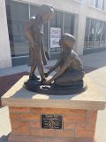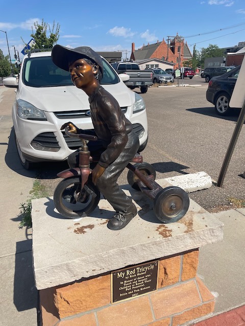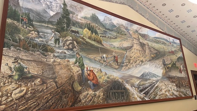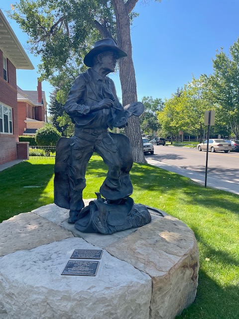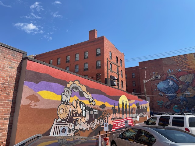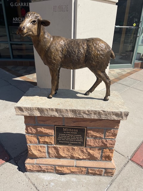 We drove downtown and parked near the train museum because the brewery we wanted to have lunch at was in the same building. We had lunch and a beer and headed out to walk around town. One of the things kind of unique to Cheyenne is they have these little statues all over town. Our favorite was Mittens. 🙂 There were also some really cool murals.