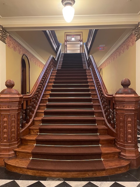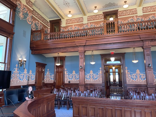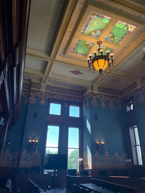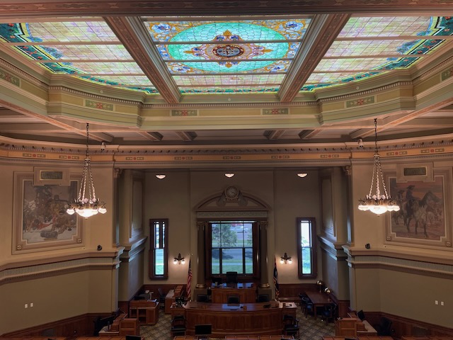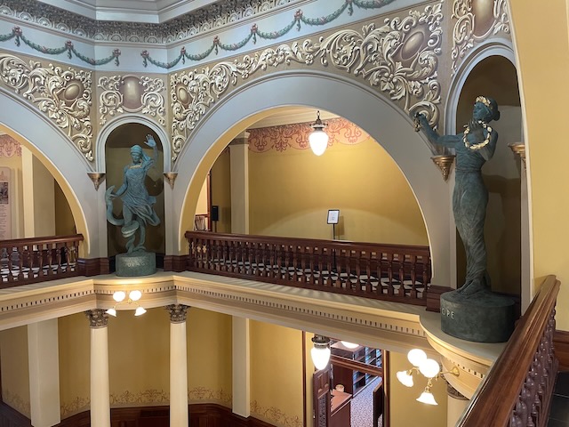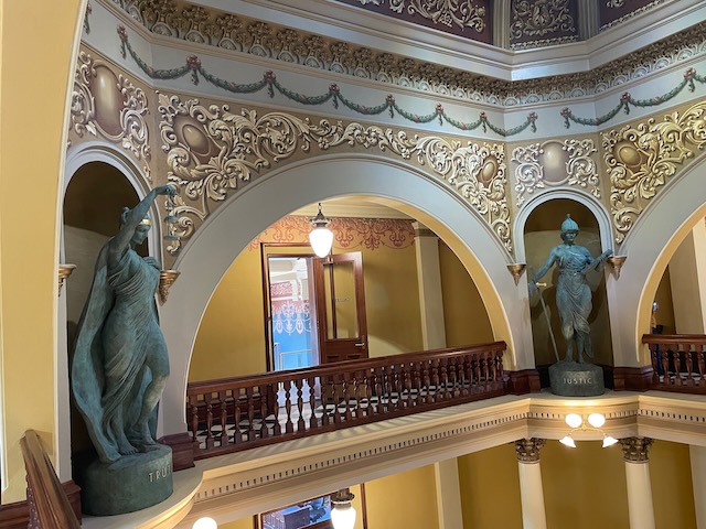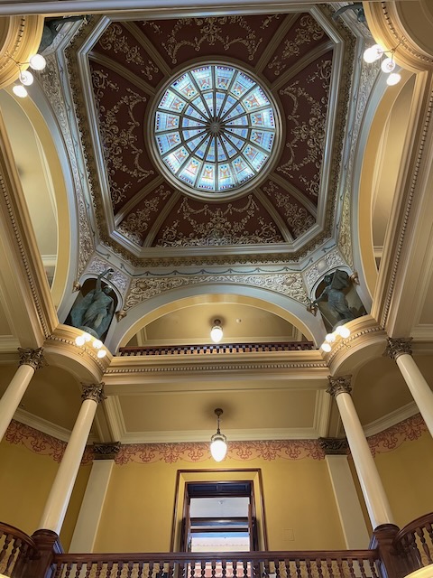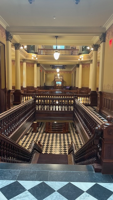 She asked if she told us the significance of the frosted glass on the doors? We said, she did not. So she proceeded to explain to us that we pretty much had free rein of the entire building. If the glass on the door is clear, you can walk right in and look around whether it’s an office or a conference room, or whatever. Even the Governor’s door has clear glass. She said if the glass is frosted, it’s considered private space and entry is not allowed. How cool is that!?