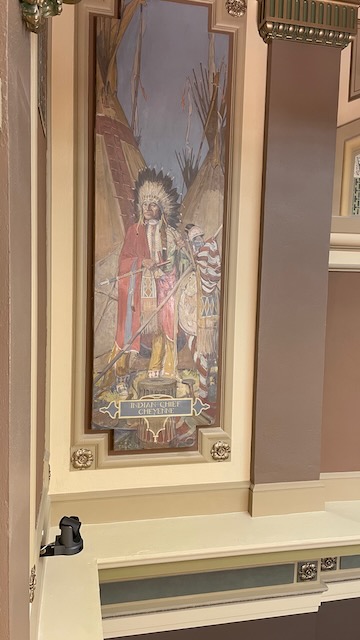 After a bit, we saw some signs for the State Capitol Building. The capitol building in Des Moines was cool to tour so we decided to go see if we were allowed to tour it too. We walked to it because it wasn’t too far from the main part of town. We went inside and a lady met us at the door and told us we could tour the building on our own. Unlike the Des Moines capitol building, there were no security guards, no metal detectors, no nothing. We had walked around a little bit and another lady stopped us and asked us if we talked to the………Something. I can’t even remember what she said. I didn’t even really understand what she said, so I asked her to repeat the question. That didn’t help. We must have both looked really confused, so she said, “Did a lady meet you at the door when you came in?” So, whatever the hell she said must be a fancy word for someone who meets you at the door. LOL! We said yes, we did talk to a lady when we came in.