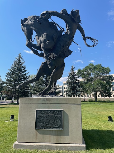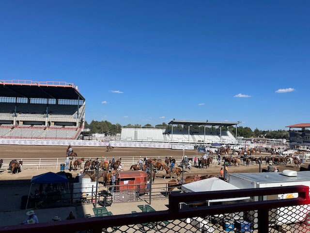 One of the things I didn’t want to miss seeing while we were in Cheyenne was the Frontier Days rodeo grounds. So Saturday morning, we got up, made breakfast and headed over there. We didn’t really expect to be able to do anything except kinda of wander around the grounds a little and maybe the visitor center. But when we got there, we noticed a bunch of horse trailers all over and began to think something might be going on. We parked and walked over to the rodeo grounds and we had stumbled into one of the National Team Roping Tour events! Oh, man ok I’m here for this! We sat and watched that for several hours until we got hungry. Then we went back into the main part of town and had dinner and a beer at another brewery before heading home.