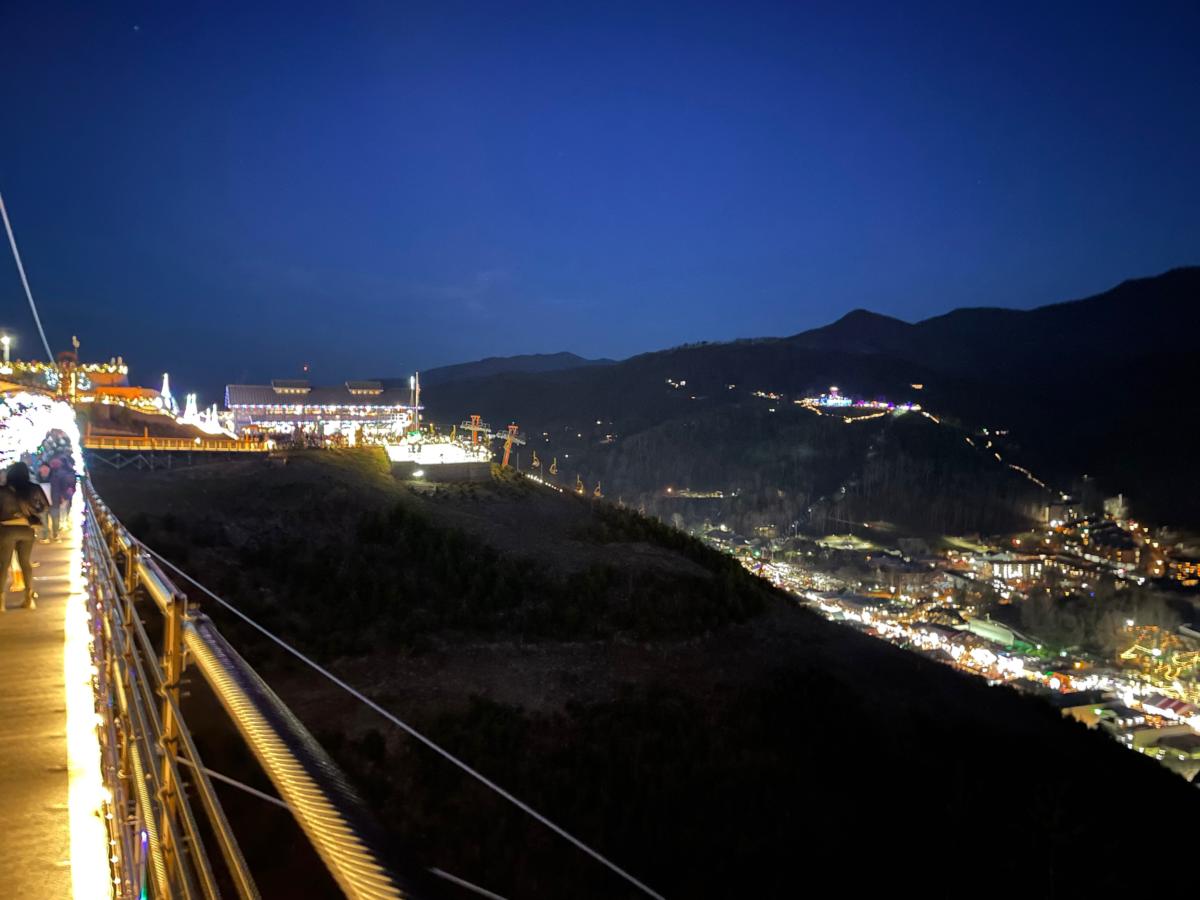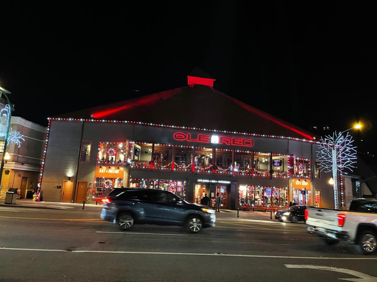 Christmas week was busy! We stayed in Pigeon Forge, Tennessee, just off of Main Street, right in the middle of everything. It was only about a 5 mile drive to Gatlinburg too, which was nice. There was an area called “The Island” I believe that we wound up in the first evening. We actually were just going to Yee-Haw Brewing Company, but the area was super cool. There were rides, a Ferris wheel, and it was all decked out in Christmas lights. There was also a pool with a fountain that was choreographed with lights and music that they did every 30 minutes.
