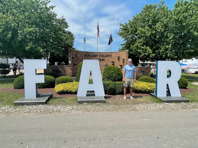 These Midwestern 4H county fairs are really cool! And popular too! Goshen isn’t a very large town. Elkhart county doesn’t seem to have all that many residents. But, when we got there, it looked like they had enough parking for the entire state. And most of it was full! This surprised us because it was just a Tuesday afternoon. Anyway, harness racing. Turned out, it IS as cool as I always thought it would be. The jockeys ride in a little 2 wheeled buggy behind the horses. The horses are not allowed to gallup. They can only trot. If they break out of a trot they are disqualified. There is a pace car with big “wings” that keep the horses from passing it. It drives around the track and the jockeys try to get their horses as close to those wings as they can as they cross the starting line. Then the car pulls away and they’re off!