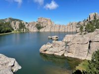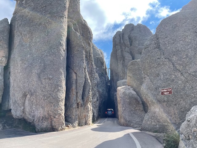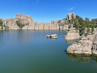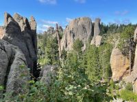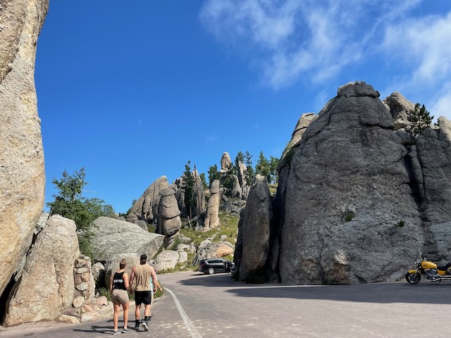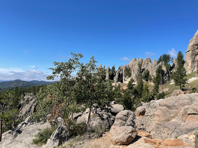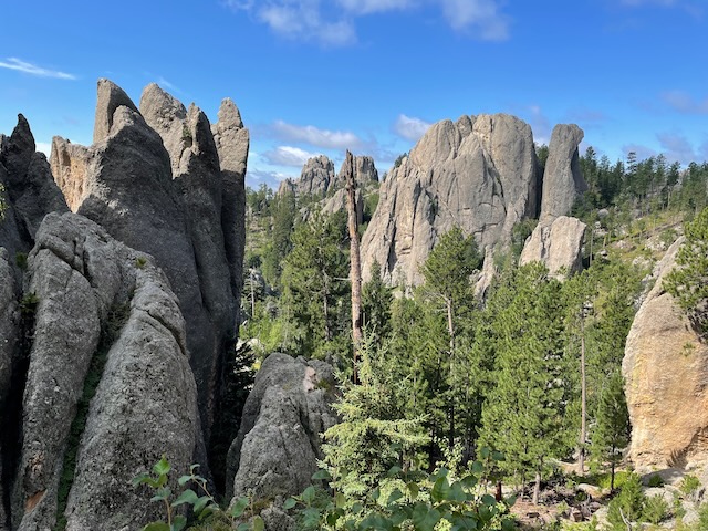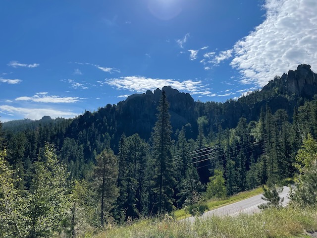 We drove the Needles Highway, the Wildlife Loop, and Iron Mountain Road. We also cruised around some of the other roads in the area just for fun. Actually, we drove Needles Highway twice. Once in each direction. We also stopped at Sylvan Lake because one of my friends suggested it. Did a short hike and climbed to the top of one of the rock formations. Iron Mountain Road if you drive it from South to North, provides some stunning views with Mount Rushmore perfectly framed in the openings of a couple of the tunnels. If you drive it North to South, you miss out on that.