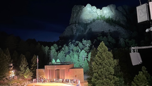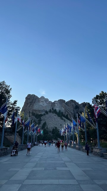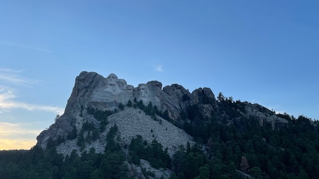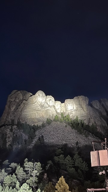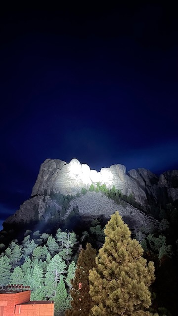 The next day, we went to Mount Rushmore. They do a lighting ceremony every evening at dark, so we waited until late in the afternoon. We arrived an hour or so before dark and took some pictures and walked the Presidential Trail, which gives you a more “up close” view of the monument. It’s .6 miles long and has 422 stairs, so be prepared for that. Once it got close to dark, we set up where we would have a good view of the stage and the sculpture. A ranger gave a 20 minute or so talk describing what presidents are on the mountain and why they were chosen. He also spoke briefly about how the monument was carved, how long it took, etc. It was really very interesting. Once the monument was lit up, they invited all active and former military down to the stage to help lower the flag and fold it. It was a level of patriotism that you don’t see all that often these days. It was very, very moving.