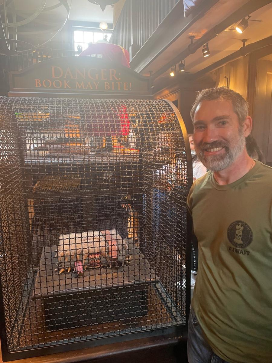 We ate at Three Broomsticks for lunch. It’s a rustic tavern with mostly British food. Tim got the Shepherd’s Pie and said it was very good. I got the Beef Pasties and they were delicious as well. We also tried the famous Butter Beer, 10/10 it was delicious. Also, the pumpkin juice was *chefs kiss*.