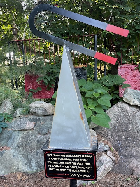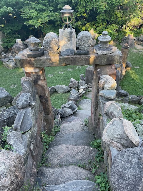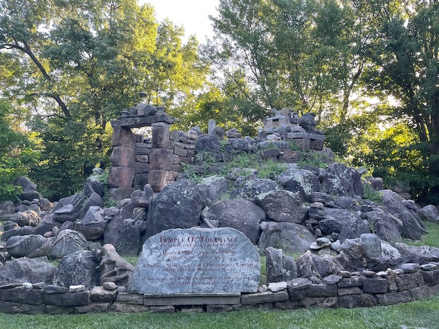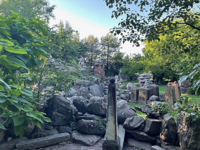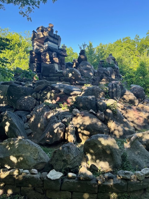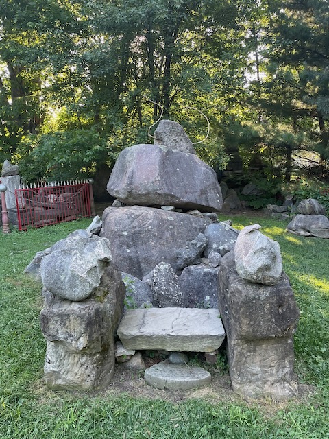 One should not visit Wapak without checking out the “Temple of Tolerance.” It’s hard to even describe what it is. It’s just a maze of sculptures, carvings, and Stonehenge-like formations. It’s well-hidden. It was built by a guy named Jim Bowsher and it takes up all of the space behind his home. That’s a lot of space because he owns the entire block! They say it’s about equal to 12 back yards. We read about it and went looking for it but it’s so well-hidden that we almost gave up on finding it. Driving around the block you’d never know it was back there. The whole exhibit has taken about 25 years to build. Jim has reportedly photographed and cross-referenced every single piece so that when he’s gone, we’ll still know where every rock came from.