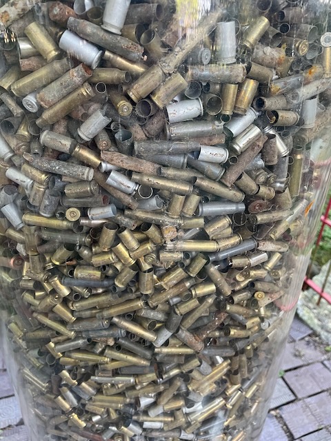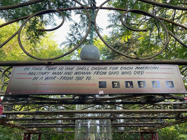 Another one of my favorite parts of the exhibit. The sign says, “IN THIS TUBE IS ONE SHELL CASING FOR EACH AMERICAN MILITARY MAN AND WOMAN FROM OHIO WHO DIED IN A WAR – FROM 1812 To…. 71,388” Apparently, the number is kept up to date. The numbers can be adjusted and there’s an empty space for when it goes over 100,000. |
