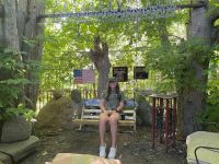 | The seating area at the top. There are a couple of benches on either side of the fire pit in the middle. Nothing else in the world exists. It’s just you and the sunlight filtering through the trees. | ![]() |