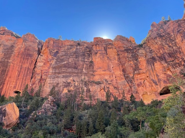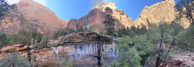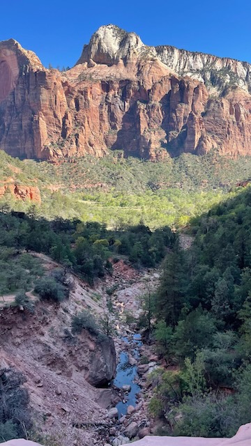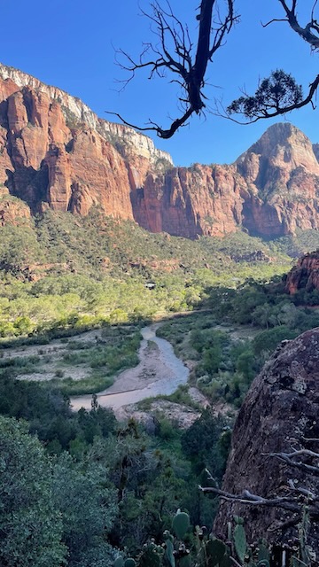 The first hike we took on was kind of 3 hikes in one. The emerald pools lower, middle, and upper. To be honest, the actual pools were not all that impressive. But the views getting there sure did make up for it. Once we reached the upper pool, we sat and had a peanut butter and jelly sandwich while we enjoyed the view. Then we backtracked a bit and took another trail a little over a mile back to the road. Then we took another trail back to where we got off the shuttle. I think it was about 6 miles total and part of it was pretty steep.