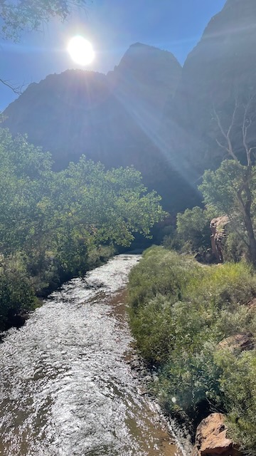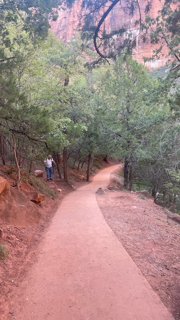 We were going to go back on Wednesday, but after 6 miles of hiking the day before and a lot of it uphill, we decided to rest a day. Thursday we went back. We started out with an easy 2.2 mile hike. Riverside walk that ends at the narrows. We didn’t hike the narrows because it was mostly in the river and we didn’t bring or rent waterproof boots. It was really a beautiful hike.